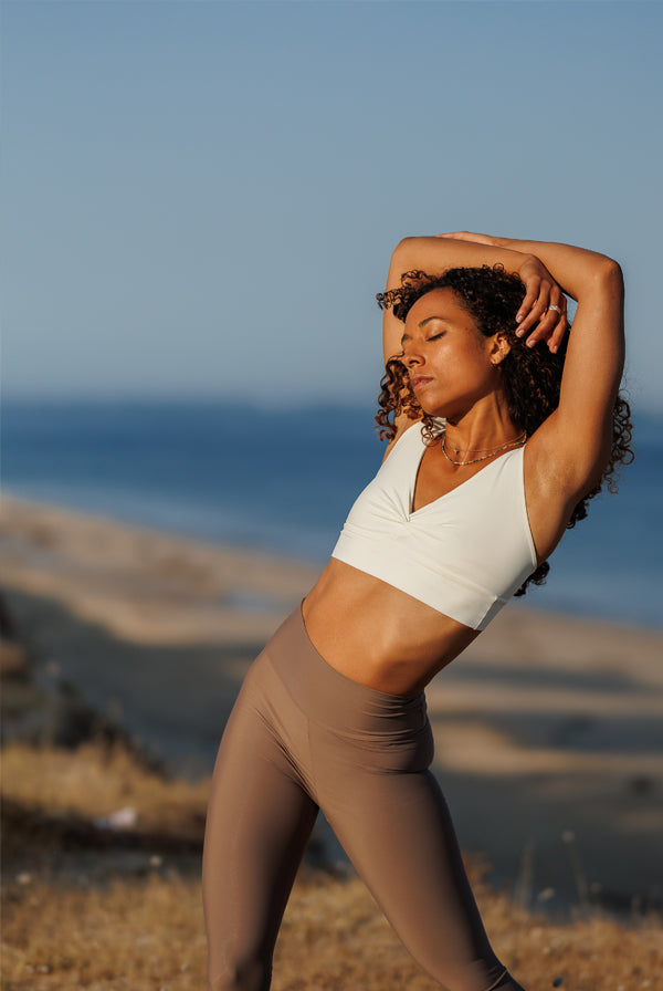 Whether you’re flowing through your yoga practice or heading out for the day, the V-Neck Drape Top offers comfort, style, and support. Trust us—you’ll love the way you feel in it!